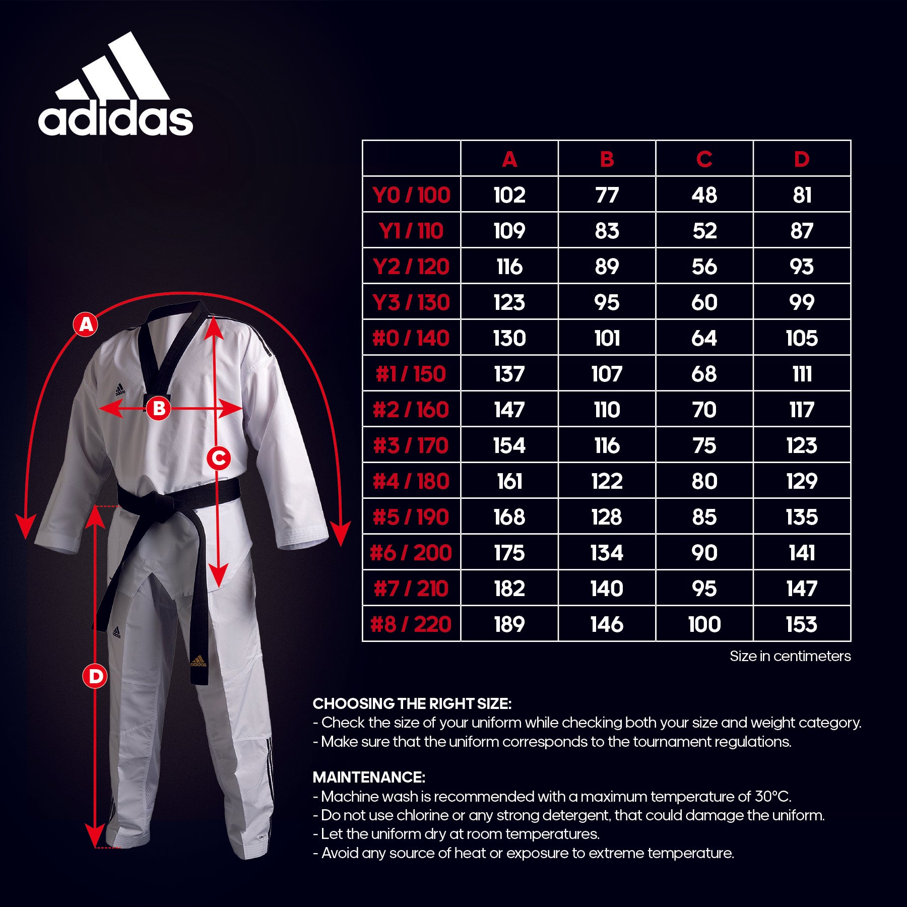 - El uniforme de Taekwondo Dobok Adi-Club 3 de Adidas está homologado por la Federación Mundial de Taekwondo. El dobok presenta un estilo clásico Adidas con tres rayas y cuenta con un cuello en forma de V en color negro. Se fabrica con una composición de tejido de 35% algodón y 65% poliéster. Esta prenda ofrece confort y ligereza.